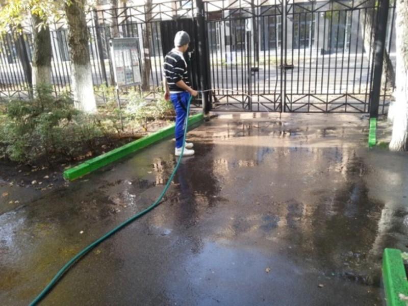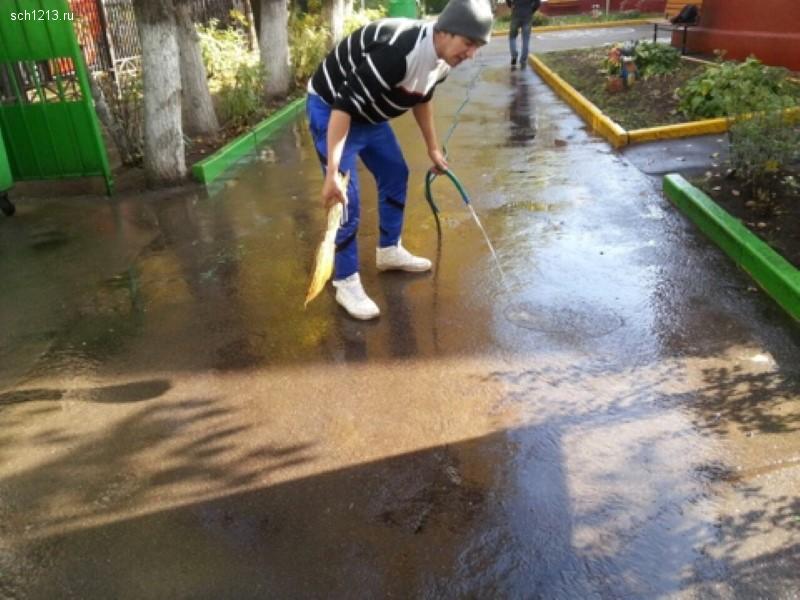 В рамках месячника по благоустройству территорий 2 октября 2016 года во всех корпусах комплекса были проведены работы по промывке асфальтовых и плиточных покрытий, тротуаров и подходов к зданиям школы сотрудниками клининговой компании.