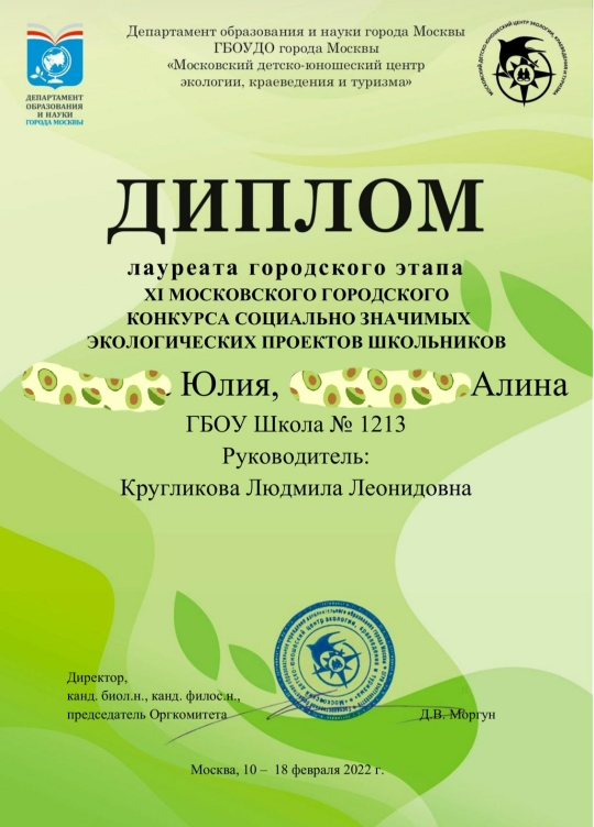 Поздравляем Кругликову Людмилу Леонидовну и учащихся 10 «А» класса Юлию и Алину ставших лауреатами городского этапа