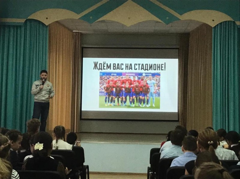 Менеджер программы Крутелев Егор провел лекцию, посвященную профессиональному футбольному клубу ЦСКА, его истории, знаменитым футболистам и трофеям.