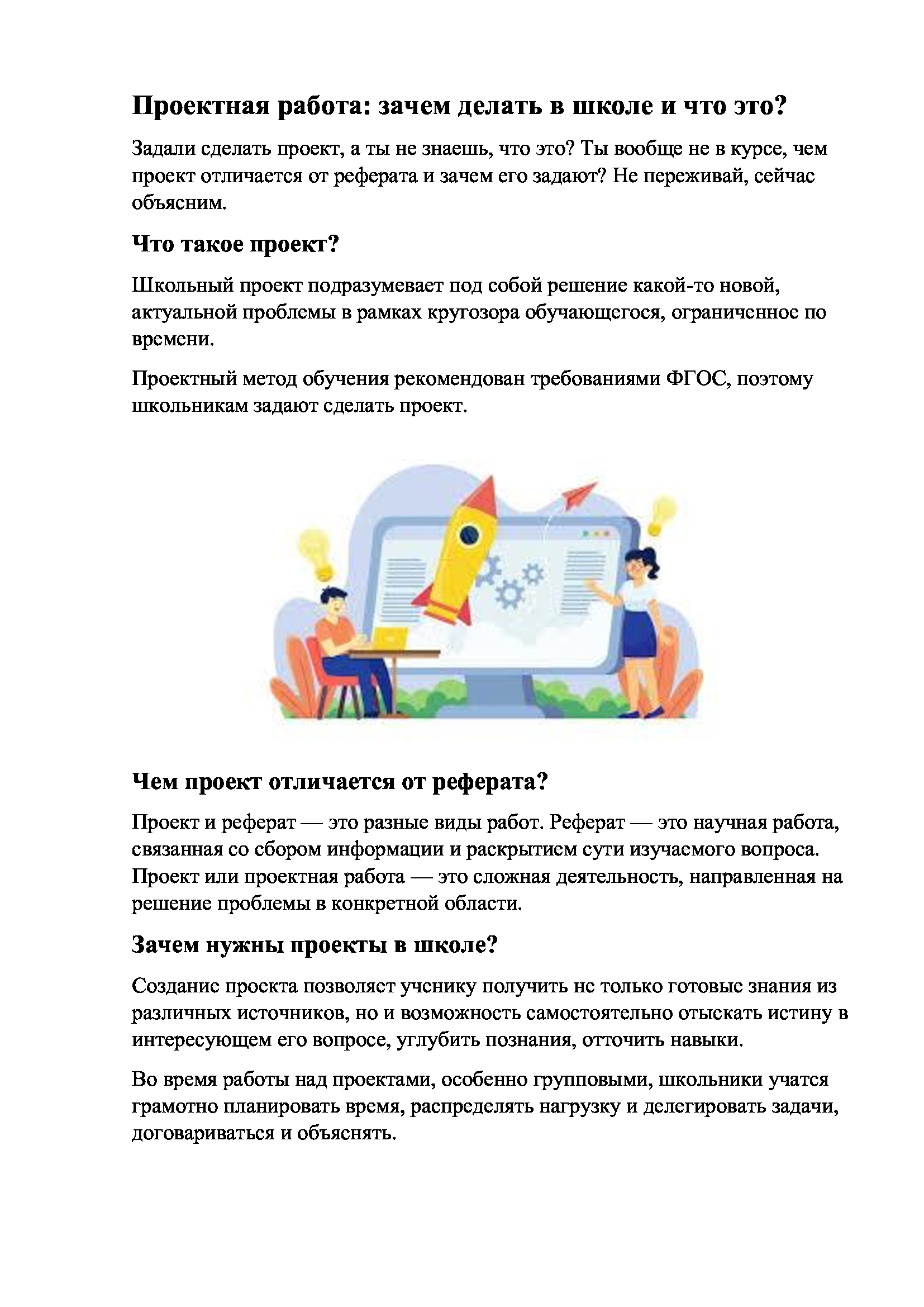Проектная работа: зачем делать в школе и что это? 29.07.2023