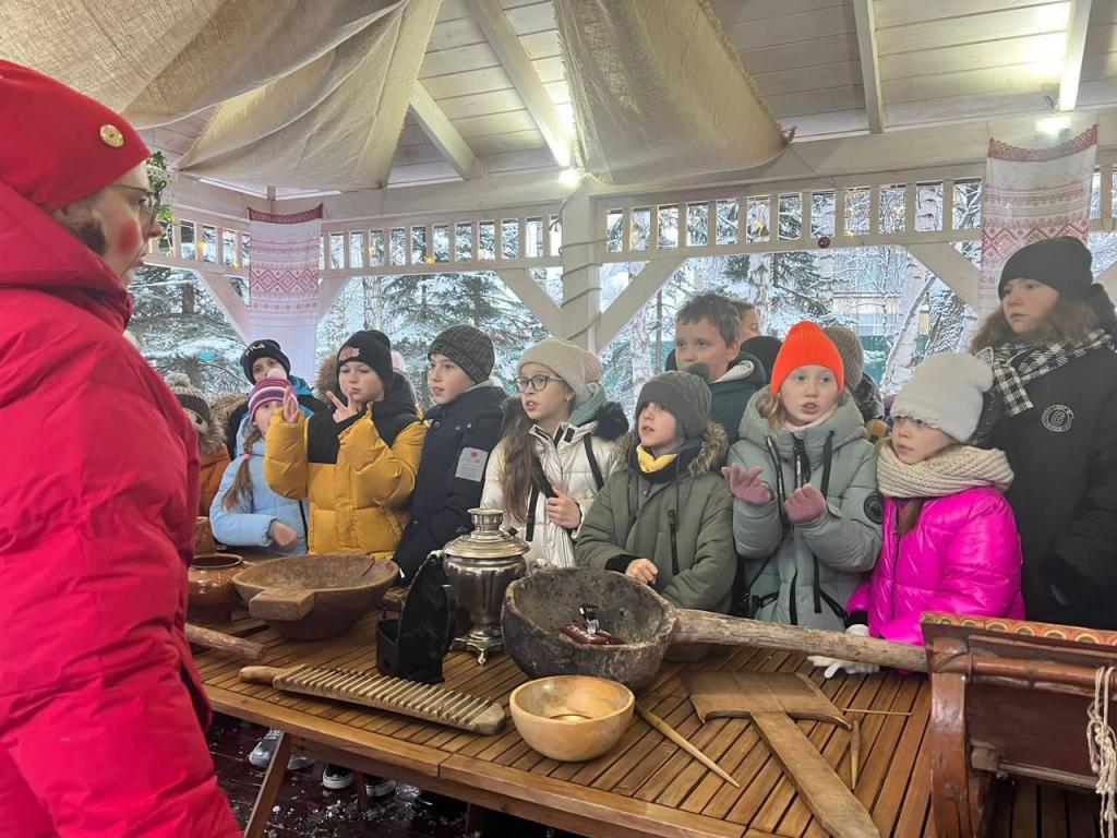 В конце квеста учеников ждал мастер-класс по изготовлению карамели с чаепитием и посещением музея русской избы и элементами шоу