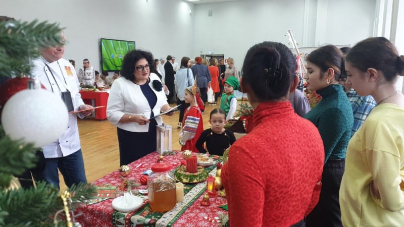 Команда 8 «А» класса приняла участие в конкурсе-фестивале «Созидание. Рождественские встречи». Фестиваль ежегодно организует и проводит колледж сферы услуг №10. На конкурсе были представлены традиции гостеприимства с элементами национального декора, кулинарии, костюмов, семейных традиций. На рождественском столе команда нашей школы представила традиционные блюда: сочиво, салат «Рождественский венок» и узвар.