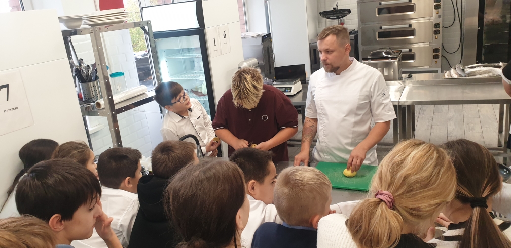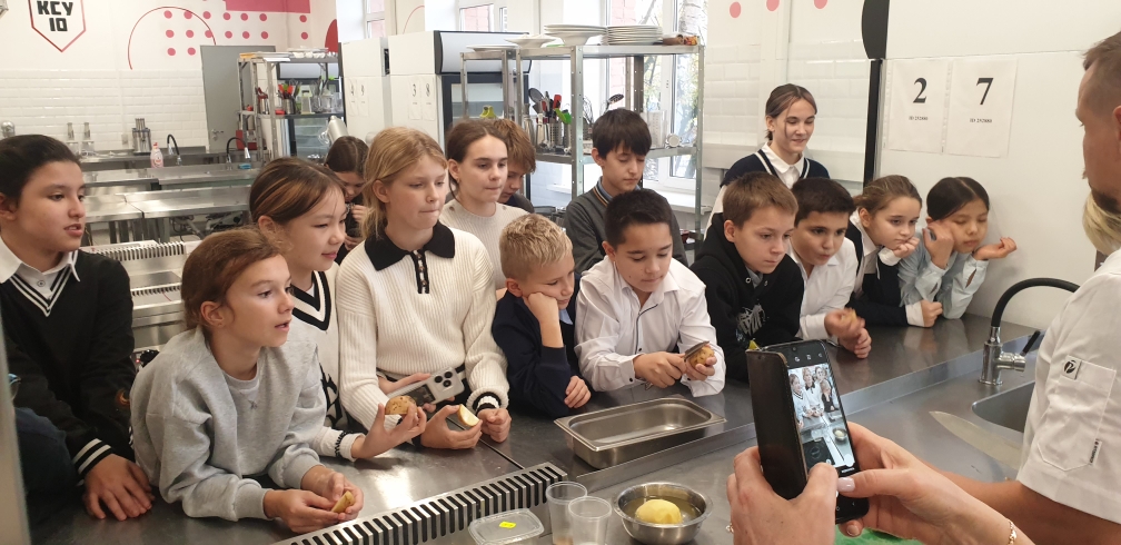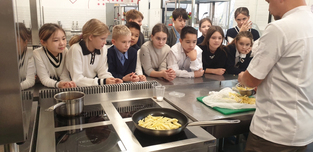 Ученики обучались искусству приготовления жареной картошки и шоколадного рулета с фруктовой начинкой. Педагоги колледжа провели мастер-класс и поделились профессиональными секретами.