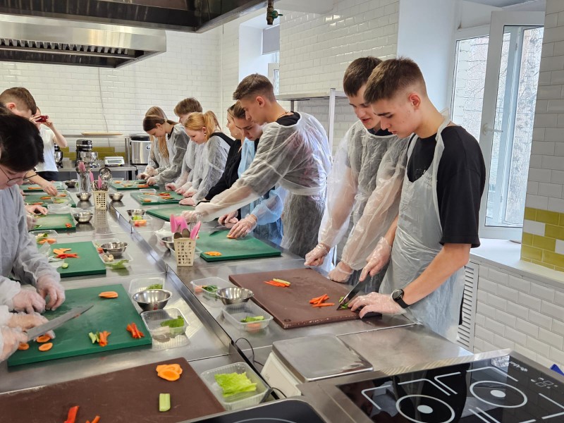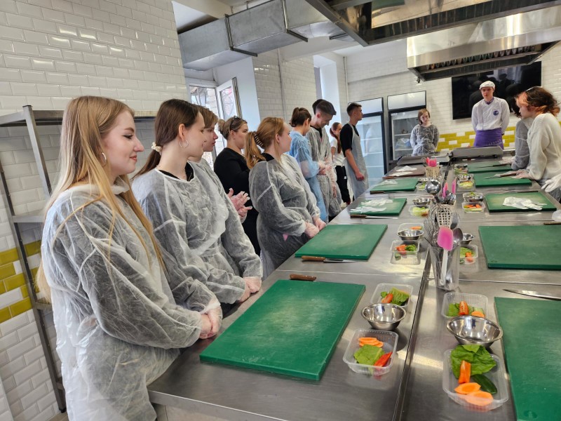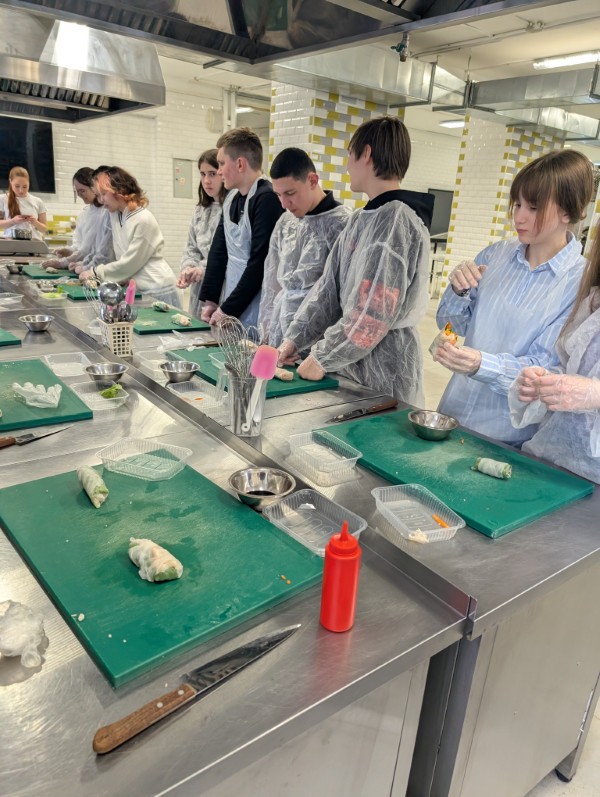 Девятиклассники увидели оборудование, на котором работают профессионалы и попробовали свои силы в приготовлении спринг-ролла.