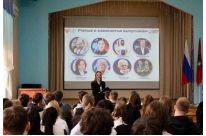 Вчера учащиеся 9-11 классов пообщались с гостями из Государственного Университета Просвещения — Оксаной Гончаровой, проректором Госуниверситета просвещения, и Мадиной Сатучиевой, начальником управления профориентации.